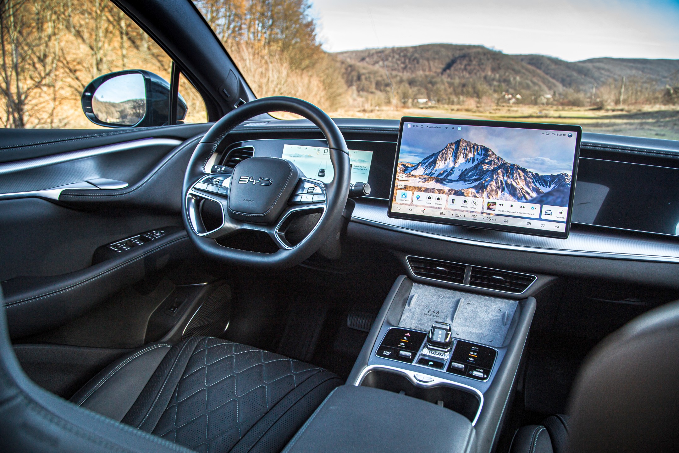 A doua zi este dedicată interiorului și experienței de utilizare cotidiene. Odată deschisă portiera, devine evident că BYD a investit masiv în calitatea percepută. Peste 80% din suprafețele interioare sunt acoperite cu piele vegană moale, completată de scaune îmbrăcate în piele matlasată, atent finisate.